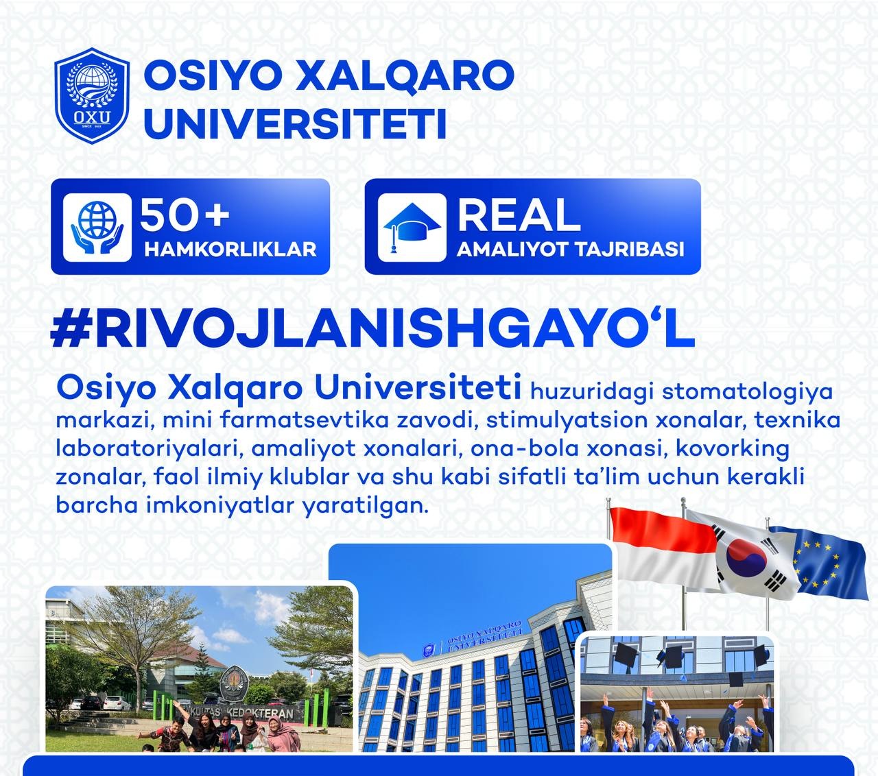 🎓 Osiyo Xalqaro Universiteti — bu zamonaviy bilim, amaliyot va kelajakni birlashtiruvchi maskan.