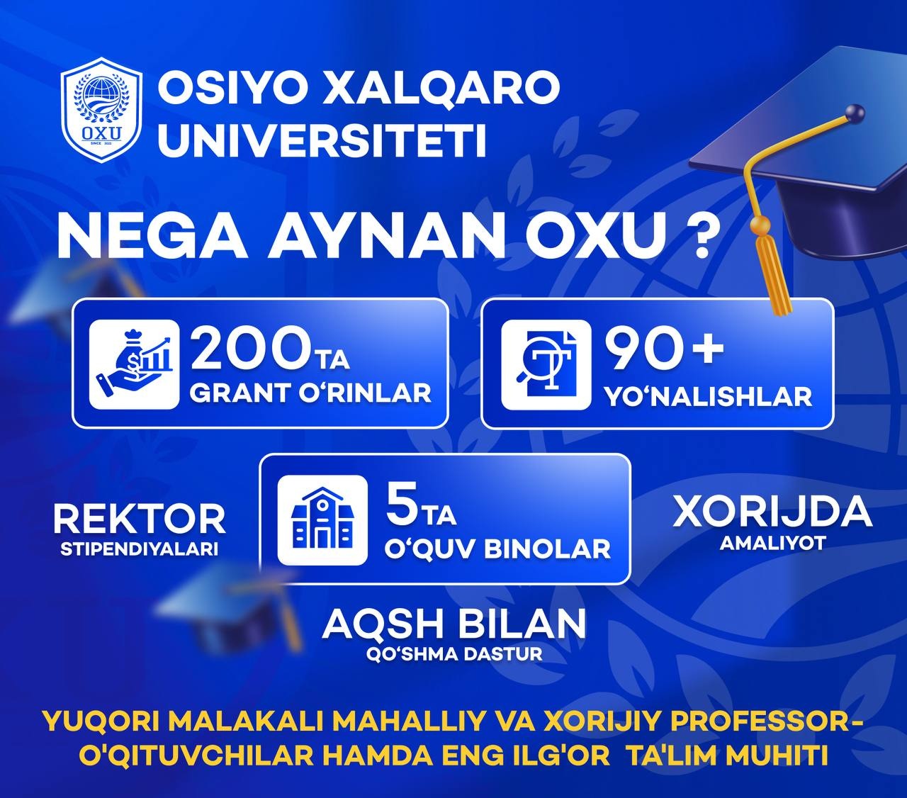 Osiyo Xalqaro Universitetida qabul davom etmoqda!