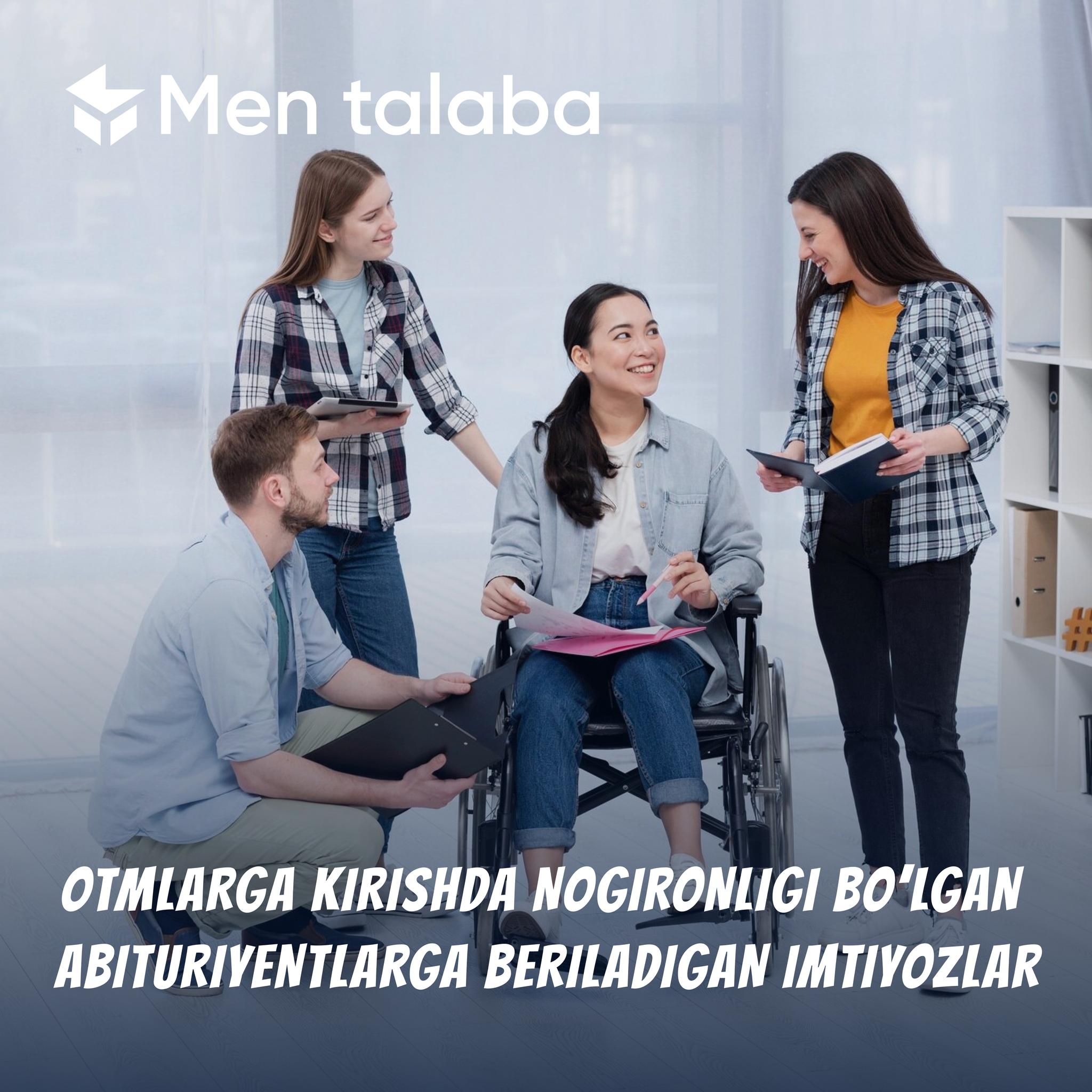Nogironligi bo‘lgan shaxslarga oliy ta’lim muassasalarining bakalavriatiga o‘qishga kirishda qanday imtiyozlar berilishini bilasizmi?